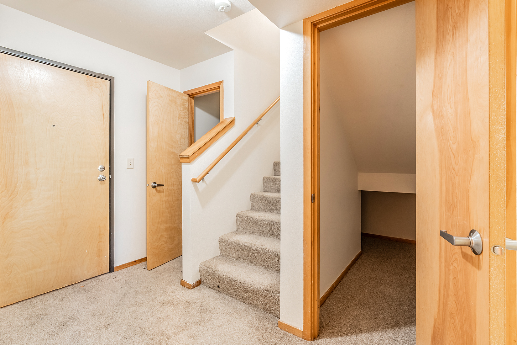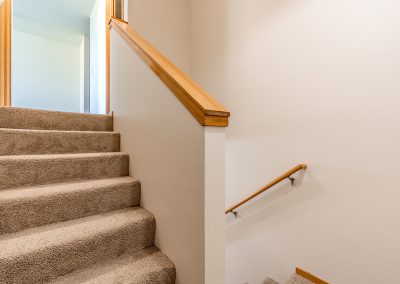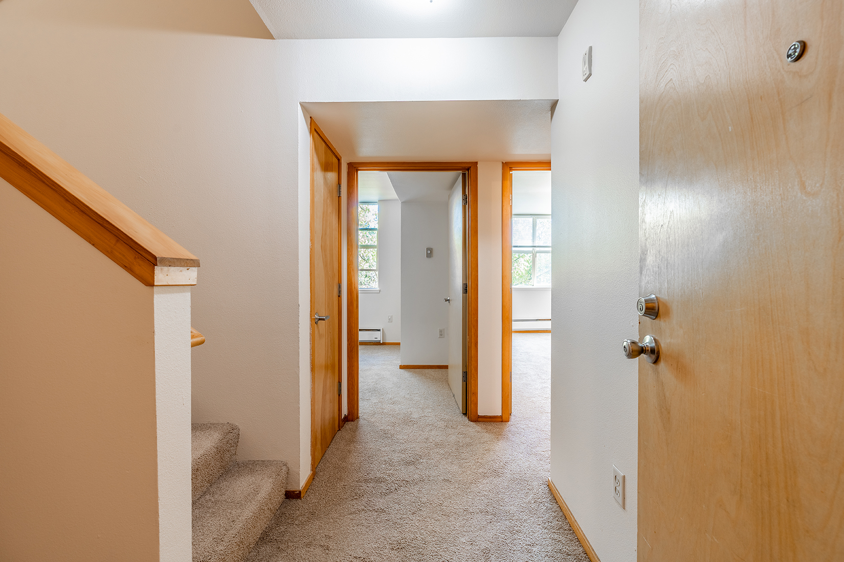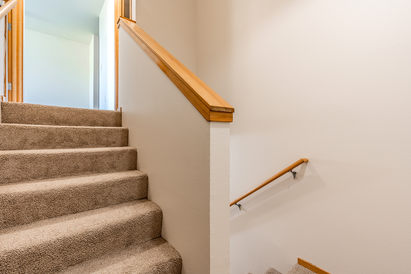 The beauty of a hardwood-look adds style, while carpet keeps rooms cozy.